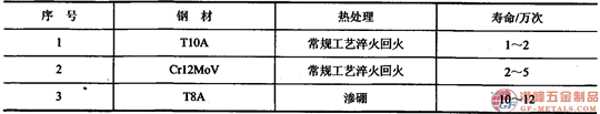 表3-16CrWMn钢冷冲模不同热处理工艺的使用寿命